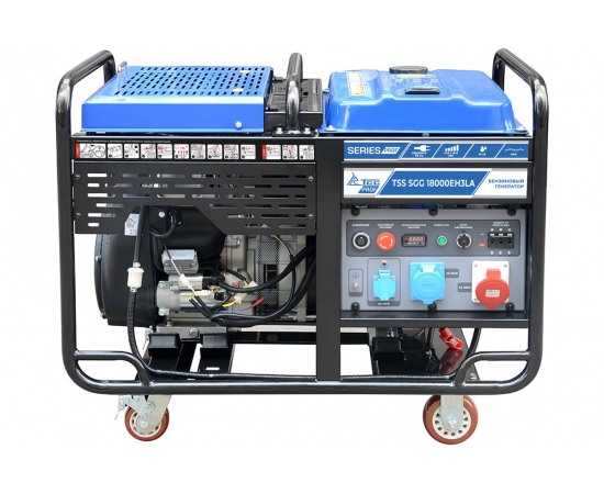 Бензогенератор трехфазный 17 кВт с электростартом, с возможностью подключения блока АВР (блок автоматики). Профессиональная серия бензогенераторов с высококачественными двигателями увеличенного ресурса LONCIN. Бензогенератор TSS SGG 18000EH3LA предназначен для выработки электроэнергии с основными характеристиками: напряжение 220-380 вольт, частота 50 Гц и номинальной мощностью 17 кВт. Модель оснащена колесным комплектом, для удобства передвижения, отличается от других моделей увеличенным топливным баком 40 литров. Область применения Трехфазный бензогенератор с максимальной мощностью 18.0 кВт не только отлично справится с созданием резервного электропитания в случаях отключения электроэнергии, но и гарантирует стабильную работу в качестве главного источника питания, при условии необходимости подключения трехфазных 380 В потребителей.