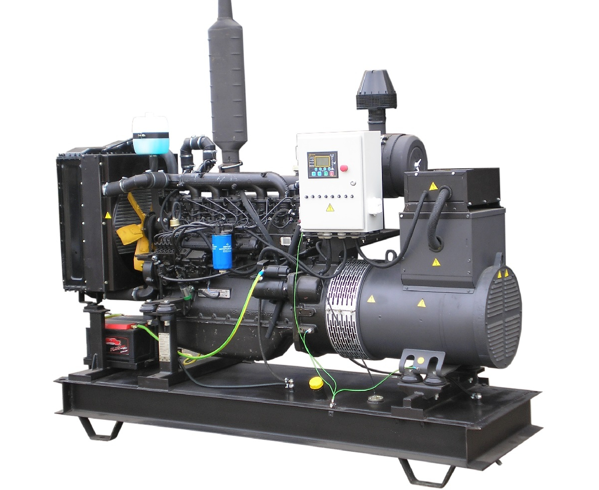 - ДЭС состоит из двигателя, пристыкованного к нему саморегулирующегося генератора переменного тока с самовозбуждением типа ECO или ECP, закрепленных к раме-баку через резиновые амортизаторы, снижающие вибрации. Вал генератора соединен с маховиком двигателя посредством стальных листовых пластин, обеспечивающим гибкость соединения;