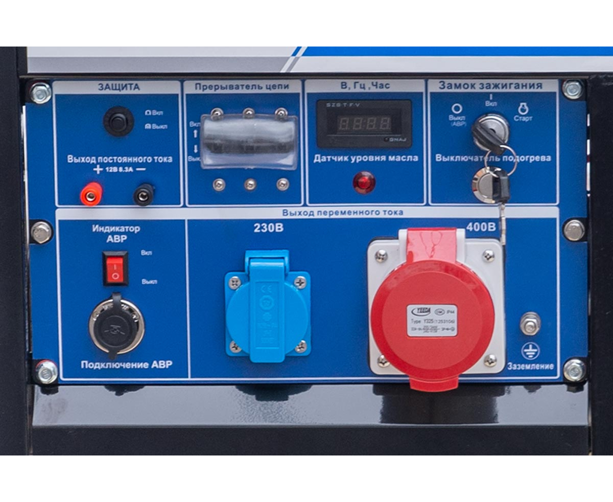 Дизель генератор с электростартом блоком автоматики. TSS SDG 6000 EHA с АВР предназначен для выработки электроэнергии с основными характеристиками: напряжением 230В (однофазные), частотой 50 Гц., с предпусковым подогревом, для облегчения запуска в сложных погодных условиях, оснащен колесным комплектом для удобства передвижения.