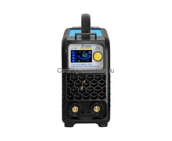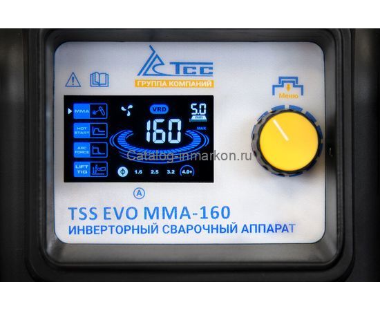 - ТSS EVO MMA-160 прост и понятен в управлении, имеет плавную регулировку тока и информативный цветной ЖК-дисплей для его отображения. Вам не придется каждый раз снимать сварочную маску для контроля и регулировки сварочного тока