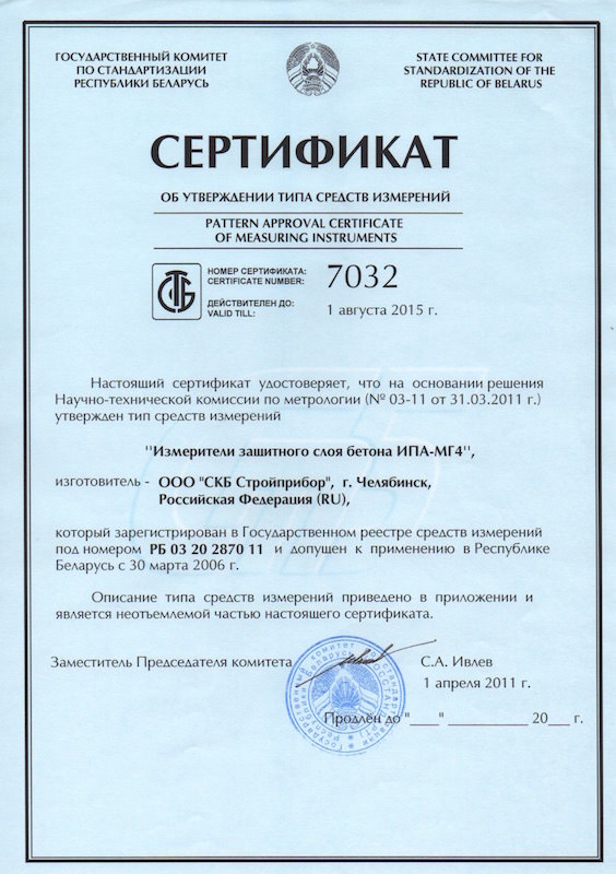 Дополнительно: кабель связи с ПК, программное обеспечение. Контрольный образец для измерителей защитного слоя бетона.