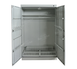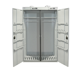 Сушка 8ми комплектов одежды, обуви, аксессуаров. Габариты (Ш*Г*В), мм: 1200х620х1900. Вес 120 кг. Водяной теплообменник. Бесшумный, в режиме естественной конвекции.