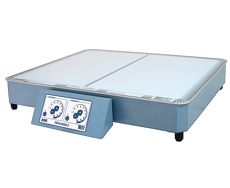 ПРН-6050-2 ? лабораторная нагревательная плита с двумя секциями с температурным режимом до 450°С позволяет производить нагрев каждой секции отдельно или совместно. Потребляемая мощность 6 кВт.