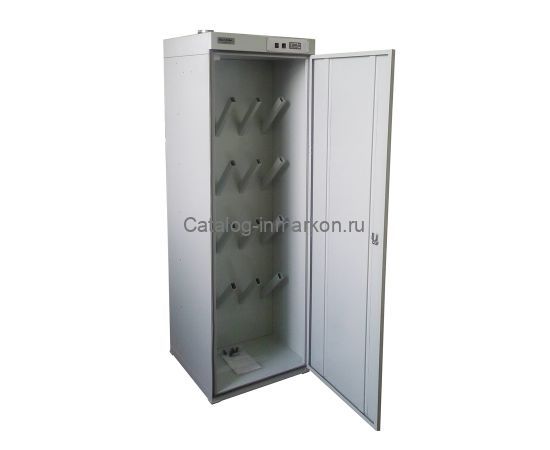 Компактный сушильный шкаф ШС-2-8 предназначен для сушки 8-ми пар обуви, перчаток или головных уборов. Внутри шкафа располагаются 16 воздухоподводящих патрубков, обеспечивающих бережную просушку обуви.