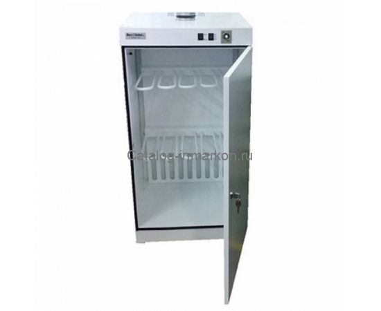 В отличие от всех представленных моделей серии сушильный шкаф ШС-2 А Компакт имеет высоту всего 1200мм. Оборудование отличается повышенной жесткостью конструкции, а также лучшей износостойкостью подвижных элементов. Сушильный шкаф оснащен одним керамическим нагревательным элементом мощностью 2кВт, вентилятором для нагнетания воздуха в шкаф и блоком управления с механическим таймером, который позволяет выставить продолжительность работы. Для обеспечение пожарной безопасности сушильный шкаф снабжен системой защиты от перегрева. В конструкции изделия предусмотрен ограничительный термостат с датчиком, позволяющий ограничить температуру подаваемого воздуха. Конструктивно шкаф имеет возможность присоединения к системе вытяжной вентиляции.