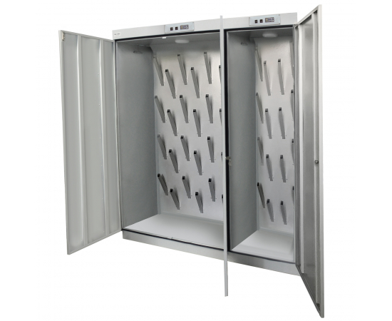 Сушильный шкаф ШС-8-24 ср предназначен для сушки 24 пар обуви. Шкаф имеет две секции. Поток теплого воздуха, создаваемый в сушильном шкафу, обеспечивает эффективный процесс просушивания одежды за минимальное время и без повреждения материалов.