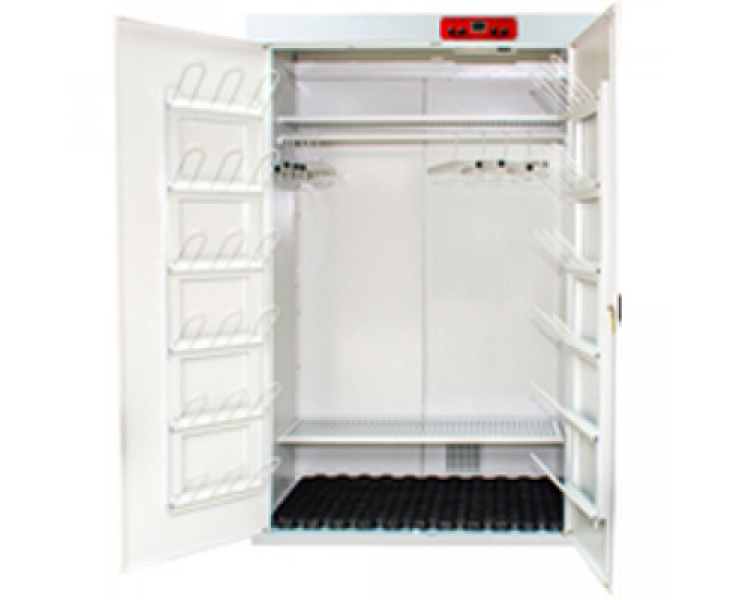Сушильный шкаф РШС-03И предназначен для сушки 4 комплектов зимней одежды, обуви и аксессуаров (или 8 комплектов летней одежды). Поток теплого воздуха, создаваемый в сушильном шкафу, обеспечивает эффективный процесс просушивания одежды за минимальное время. Сушильный шкаф не сжигает кислород воздуха, безвреден для здоровья, так как в нем использованы экологически чистые материалы.