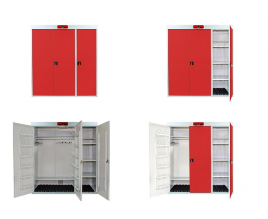 Шкаф сушильный РШС-01И двухсекционный, имеет сборную конструкцию. Данная модель шкафа оснащена инфракрасным нагревательным элементом и ионизатором, а также простым в использовании блоком управления с таймером и цифровым терморегулятором. Для обеспечение пожарной безопасности сушильный шкаф снабжен системой защиты от перегрева. Конструктивно имеется возможность присоединения к системе вытяжной вентиляции.