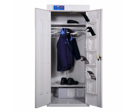 Сушильный шкаф РШС-4-80 предназначен для сушки 4 комплектов зимней одежды (или 8 комплектов летней одежды), 4 пар обуви, 4 пар перчаток, шапок. Поток теплого воздуха, создаваемый в сушильном шкафу, обеспечивает эффективный процесс просушивания одежды за минимальное время. Сушильный шкаф не сжигает кислород воздуха, безвреден для здоровья, так как в нем использованы экологически чистые материалы.