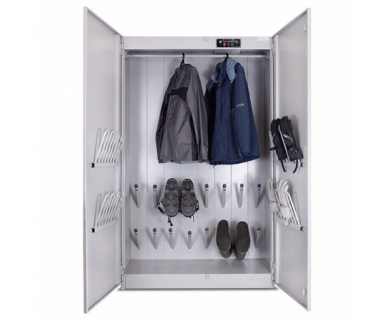 Сушильный шкаф РШС-8-120 предназначен для сушки 8 комплектов одежды, 8 пар обуви, 8 пар перчаток, шапок. Поток теплого воздуха, создаваемый в сушильном шкафу, обеспечивает эффективный процесс просушивания одежды за минимальное время. Сушильный шкаф не сжигает кислород воздуха, безвреден для здоровья, так как в нем использованы экологически чистые материалы.
