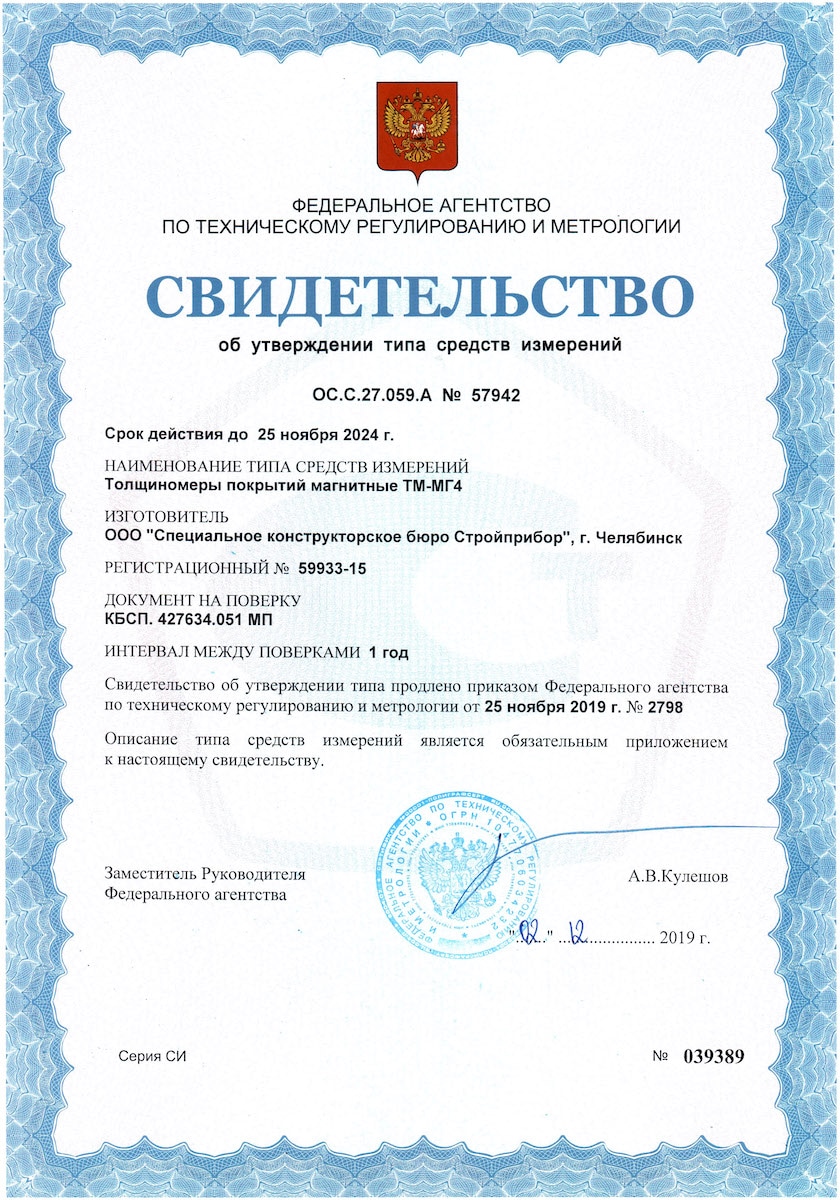 Основные средства поверки: меры толщины покрытий МТ (рег. № 50316-12); меры длины концевые плоскопараллельные от 0,1 до 20 мм, разряд 4, класс точности 2; головка измерительная диапазон измерений ± 100 мкм, погрешность ± 0,3 мкм.