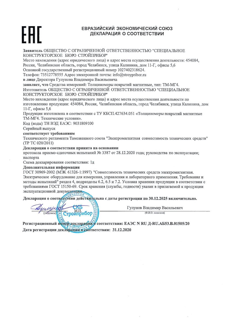 Магнитный толщиномер (лакокрасочных) покрытий ТМ-20МГ4
