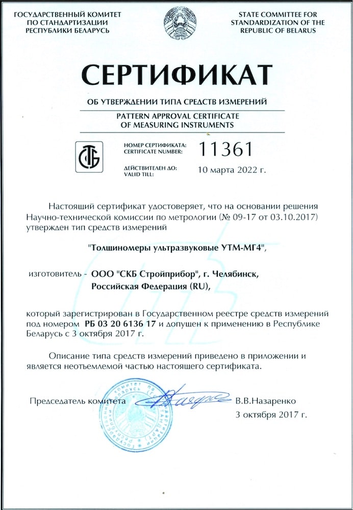 Сертификат об утверждении типа средств измерений. Республика Беларусь (BLR_certif_utm.jpg, 96 Kb) [Скачать]