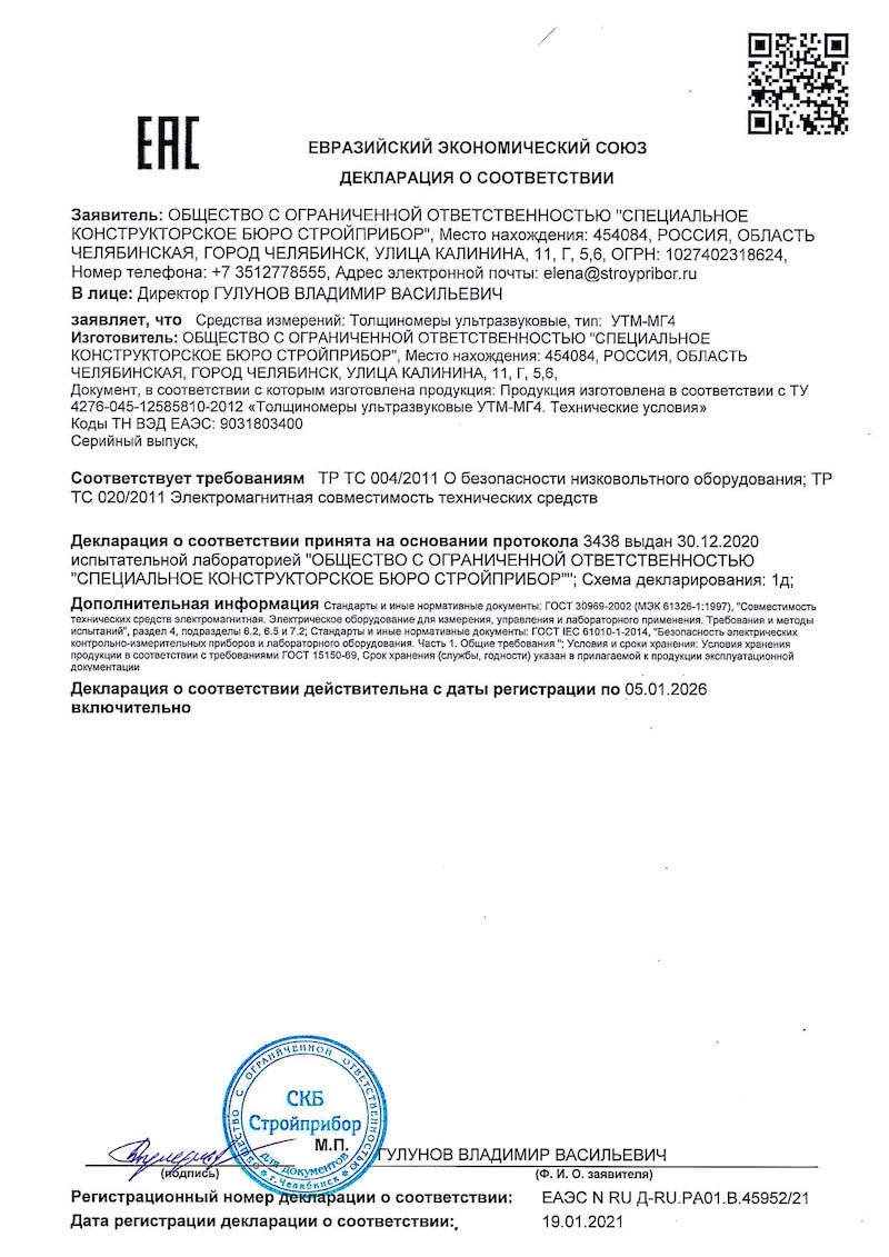 Ультразвуковой толщиномер УТМ-МГ4