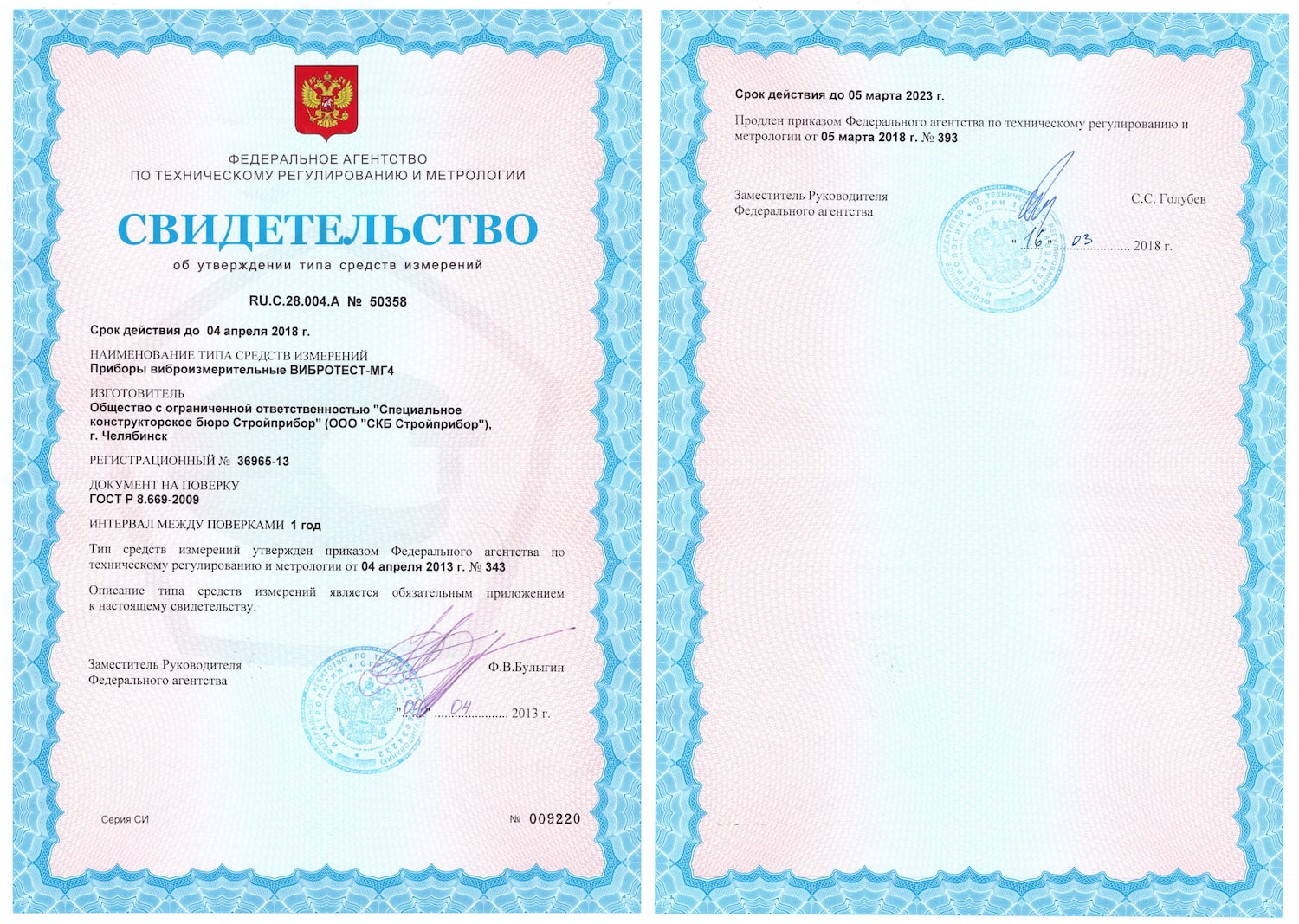 Свидетельство об утверждении типа средств измерений. Российская Федерация (svidetelstvo_vibrotest.jpg, 373 Kb) [Скачать]