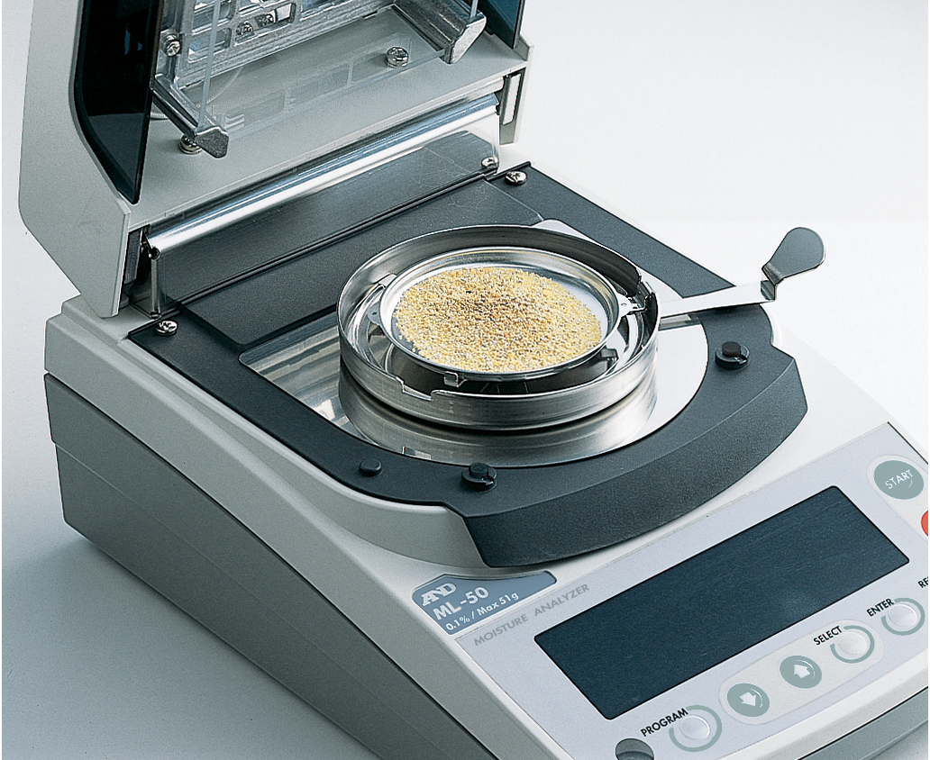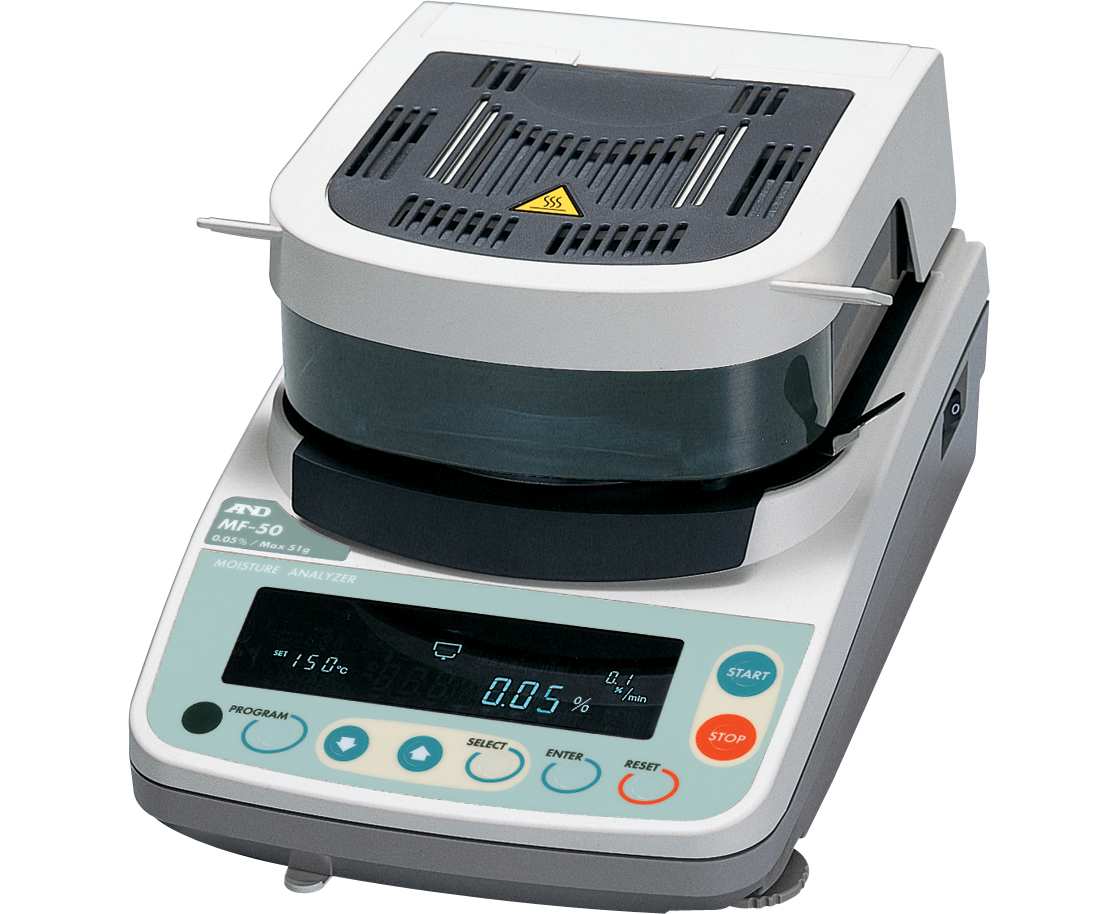 Анализаторы влажности MF-50 от A&D – современная модель, проводящая измерения термогравиметрическим экспресс методом, предназначен для измерения влажности (массовой доли влаги) твердых, монолитных, сыпучих, пастообразных материалов, водных суспензий и неводных жидкостей. Быстрый и равномерный нагрев обеспечивают галогеновая лампа и инновационная технология вторичного излучения SRA (Secondary Radiation Assist). Система зеркал позволяет отражать излучение галогеновой лампы и направлять его на образец, тем самым обеспечивая равномерный прогрев образца и минимизируя время измерения.