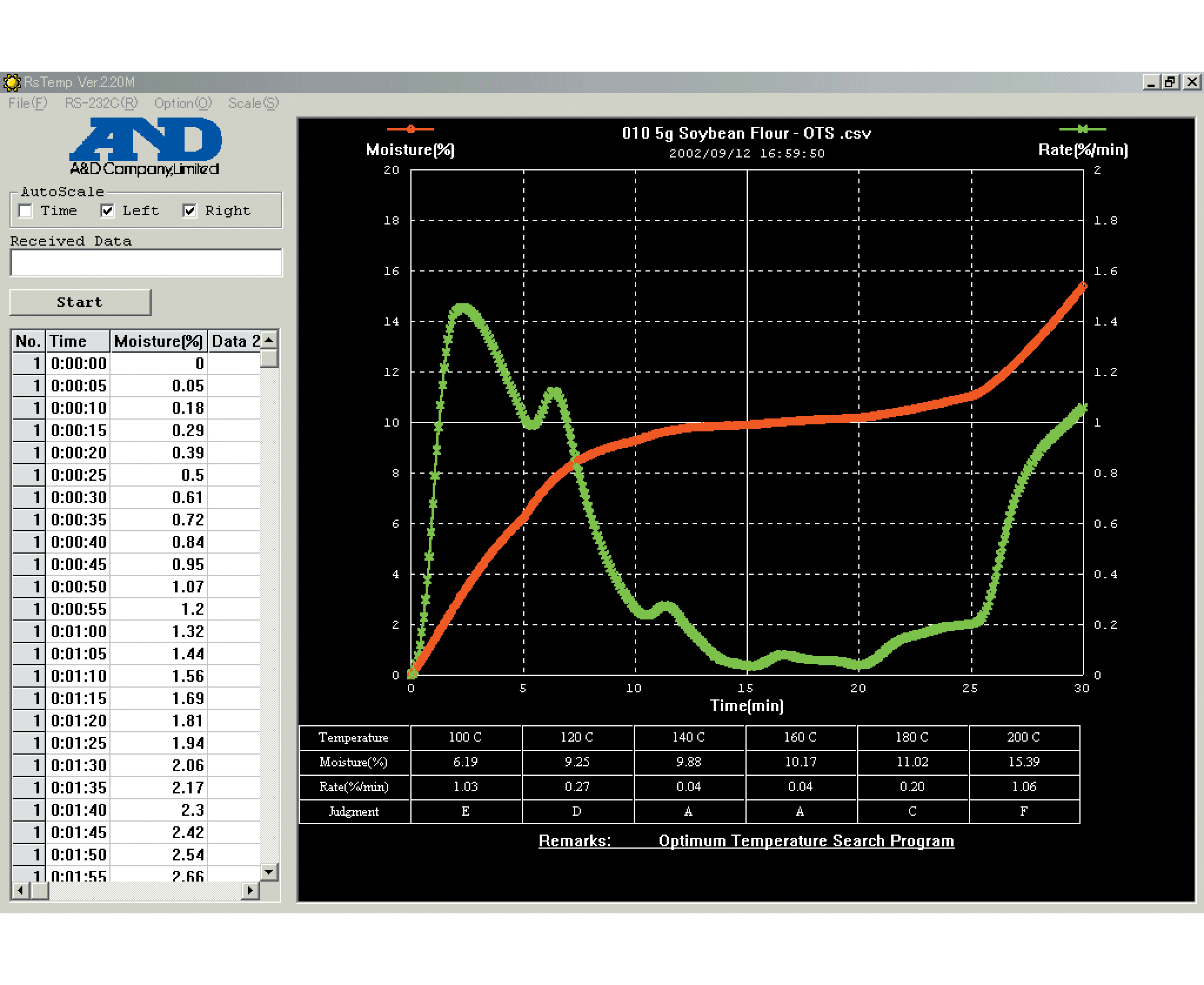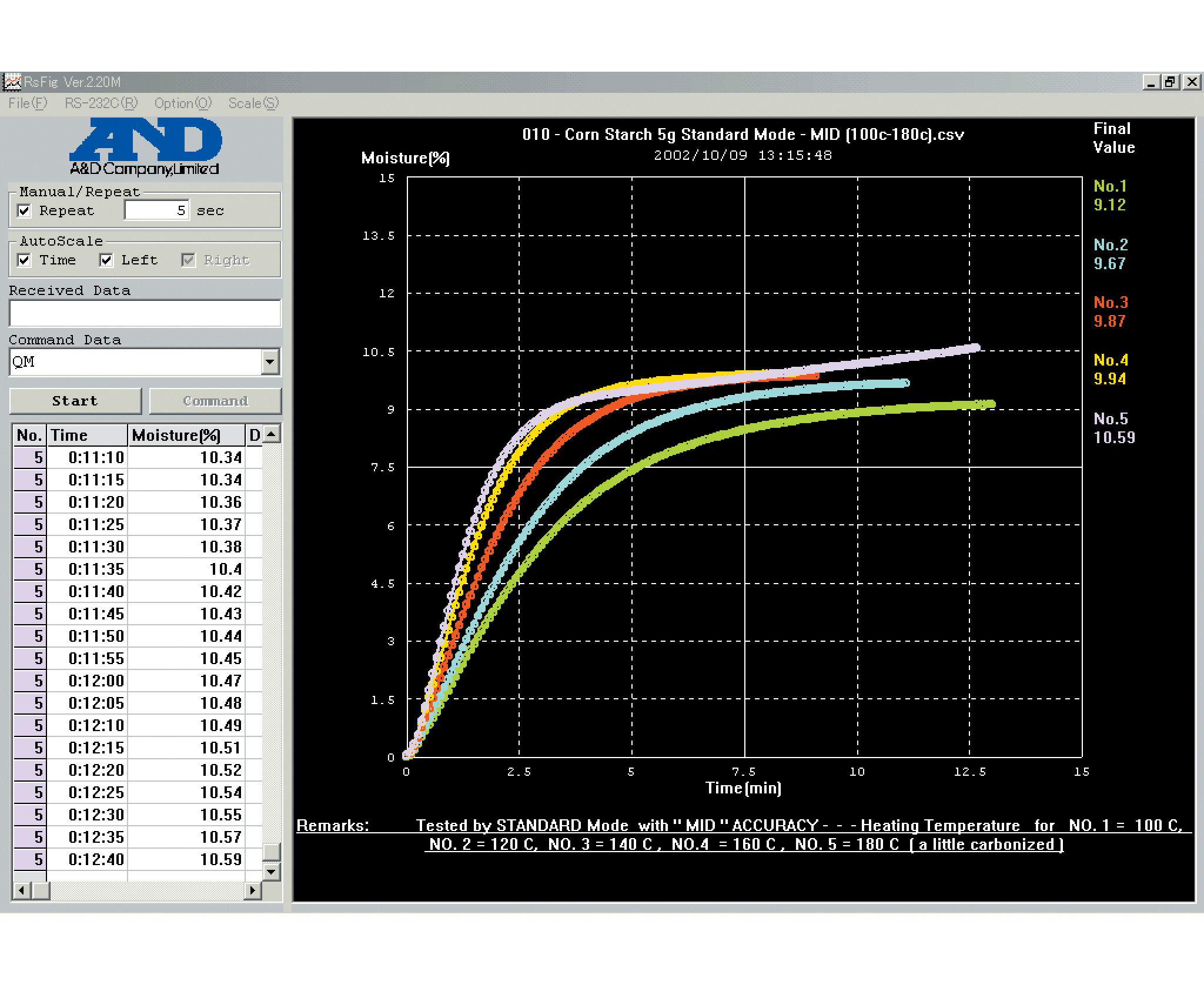 - автоматический (ввод данных: температура, значение %/мин (скорость сушки), измерение прекращается автоматически, когда содержание влаги становится меньше заданного уровня