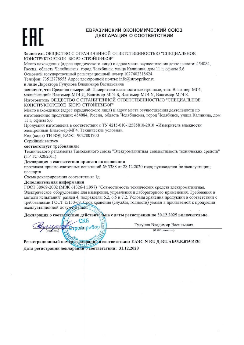 Влагомер – МГ4У - это универсальная версия, предназначеная для измерений влажности пилопродукции и деревянных деталей, твердых и сыпучих строительных материалов диэлькометрическим методом по ГОСТ 21718 и ГОСТ 16588, включающая в себя градуировочные зависимости на древесину (см. Влагомер-МГ4Д) и бетон (см. Влагомер-МГ4Б), а так же 7 градуировочных зависимостей на сыпучие стройматериалы (граншлак, щебень Фр 3-10, песок вольский, песок МК2, отсев, зола, шлаковая пемза).