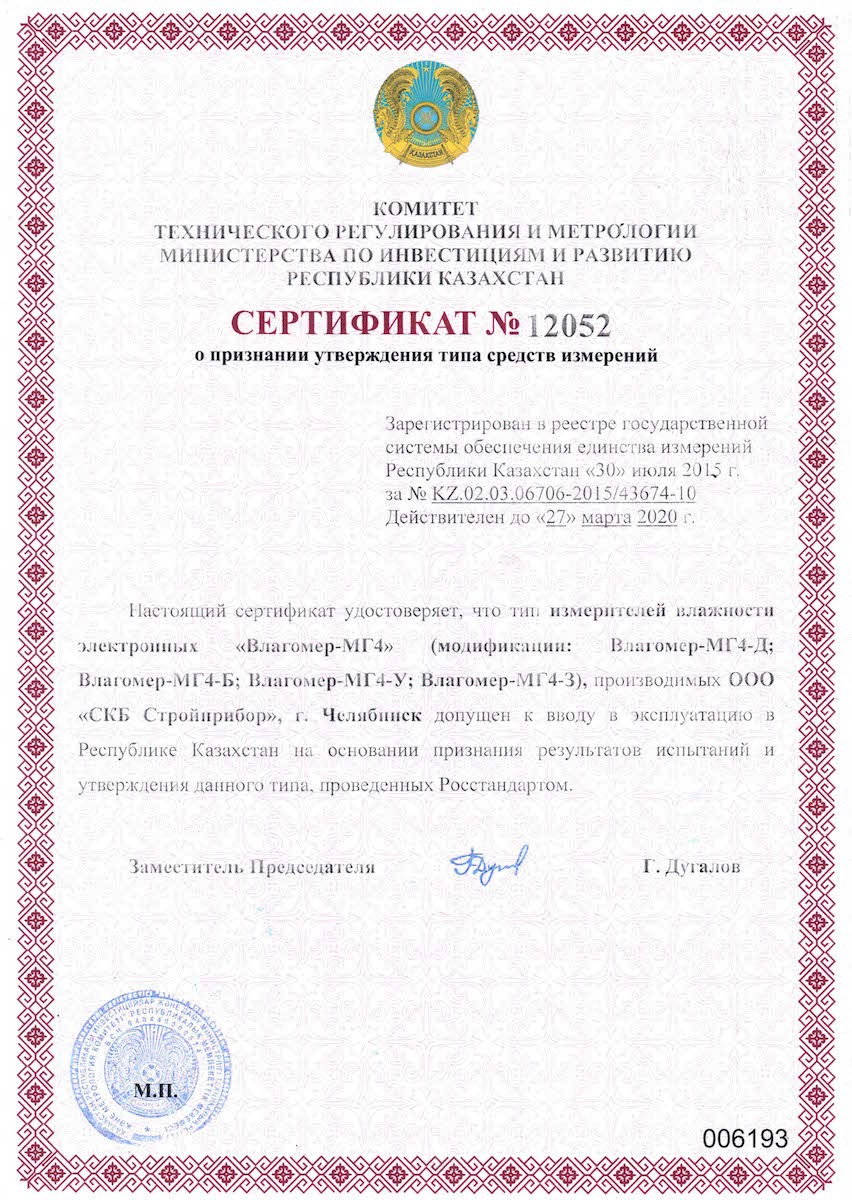 Сертификат о признании утверждения средств измерений. Республика Казахстан. (kz_sertif_vlagomer.jpg, 260 Kb) [Скачать]
