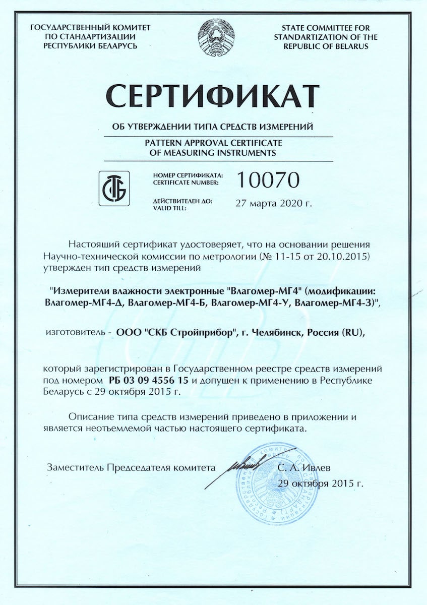 Сертификат об утверждении типа средств измерений. Республика Беларусь. (BLR_certif_vlagomer.jpg, 145 Kb) [Скачать]