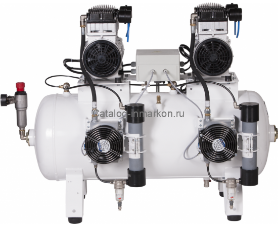 КМ-100.OLD20ТД ? медицинский безмасляный компрессор с прямым приводом номинальной мощностью 1,4+1,4 кВт (два узла насоса на одном ресивере) и частотой 50 Гц, что обеспечивает производительность 16,8 м3/ч. при рабочем давлении 8 бар. Оснащён мембранным осушителем.
