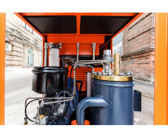 Станция состоит из компрессора винтового, асинхронного короткозамкнутого электродвигателя, рамы, клиноременной передачи, сосуда, работающего под давлением, блока охлаждения с вентилятором, фильтра масляного, фильтра воздушного, датчиков системы управления, кожуха.