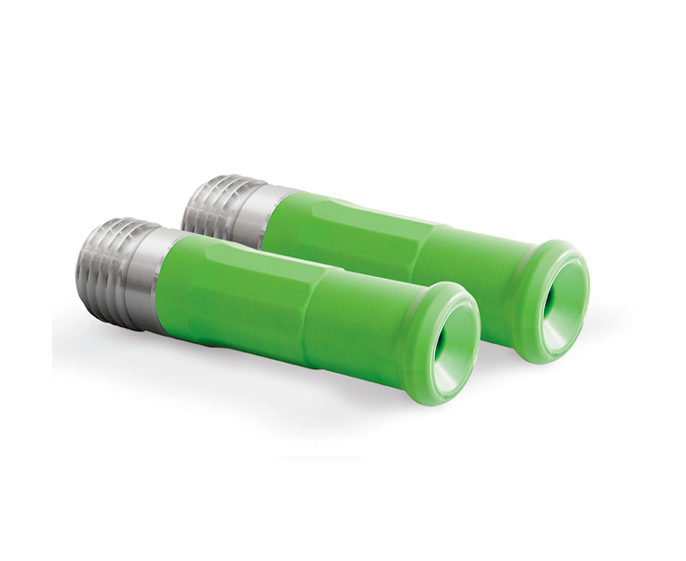 Сопла 600 серии это износостойкие пескоструйные сопла Вентури из карбида кремния (SiC). Срок службы - до 600 часов. Оболочка выполнена из полиуретана. Резьба: Алюминий, 50 мм под соплодержатель NHP. Входной диаметр: 32 мм.