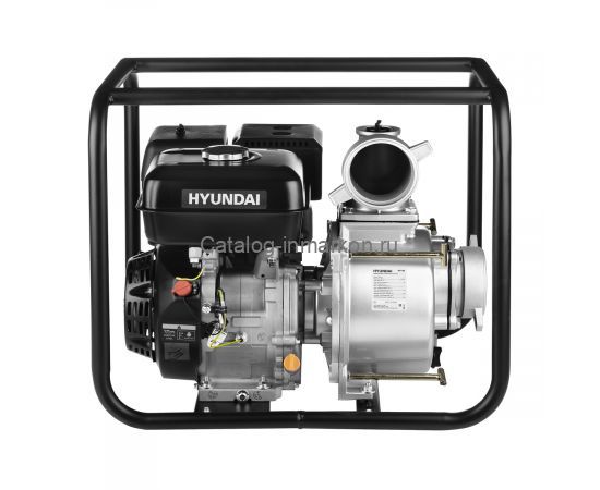 Бензиновая мотопомпа Hyundai HYT 100 с двигателем мощностью 9.0 л.с. (6.6 кВт) поднимает жидкость на высоту до 30 метров, максимаьной производитеьностью 833 л/мин, максимальная глубина всасывания составляет 7 метров. Для всасывания используется труба диаметром 100 мм. Вес мотопомпы 44 кг.