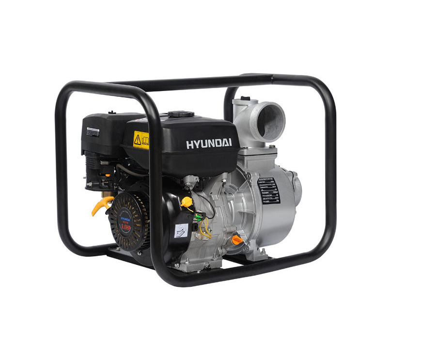 Бензиновая мотопомпа HYUNDAI с двигателем мощностью 9 л.с. (6.6 кВт) поднимает жидкость на высоту до 25 метров, максимальная глубина всасывания составляет 6 метров. Для всасывания используется труба диаметром 100 мм. Вес мотопомпы 45.2 кг. Гарантия