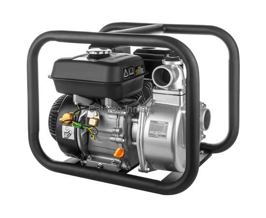 Бензиновая мотопомпа HYUNDAI с двигателем мощностью 5.5 л.с. (3.1 кВт) поднимает жидкость на высоту до 30 метров, максимальная глубина всасывания составляет 6 метров. Для всасывания используется труба диаметром 50 мм. Вес мотопомпы 25.8 кг. Гарантия