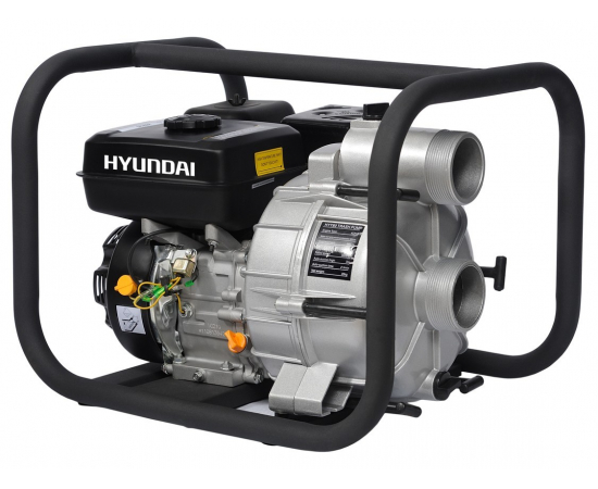 Бензиновая мотопомпа HYUNDAI с двигателем мощностью 7.0 л.с. (4.2 кВт) поднимает жидкость на высоту до 20 метров, максимальная глубина всасывания составляет 6 метров. Для всасывания используется труба диаметром 80 мм. Вес мотопомпы 40.1 кг. Гарантия